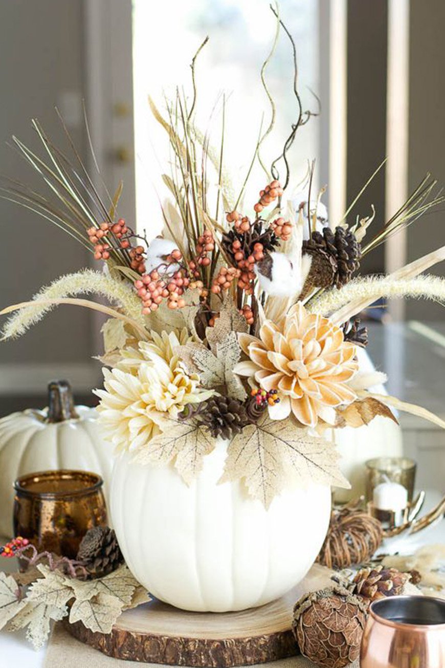 – You could also use small pumpkins (and no, it doesn’t have to be halloween pumpkins!) Pumpkins make great centrepieces – hollow and fill them with dried flowers for maximum impact… or fill pumpkins with ice and use them as wine coolers. Some of these pumpkin ideas are just AMAZING! I just can’t get enough of them!